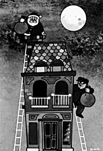 I have used colour images where available which may also show rather more of the artwork than the actual printed illustration.